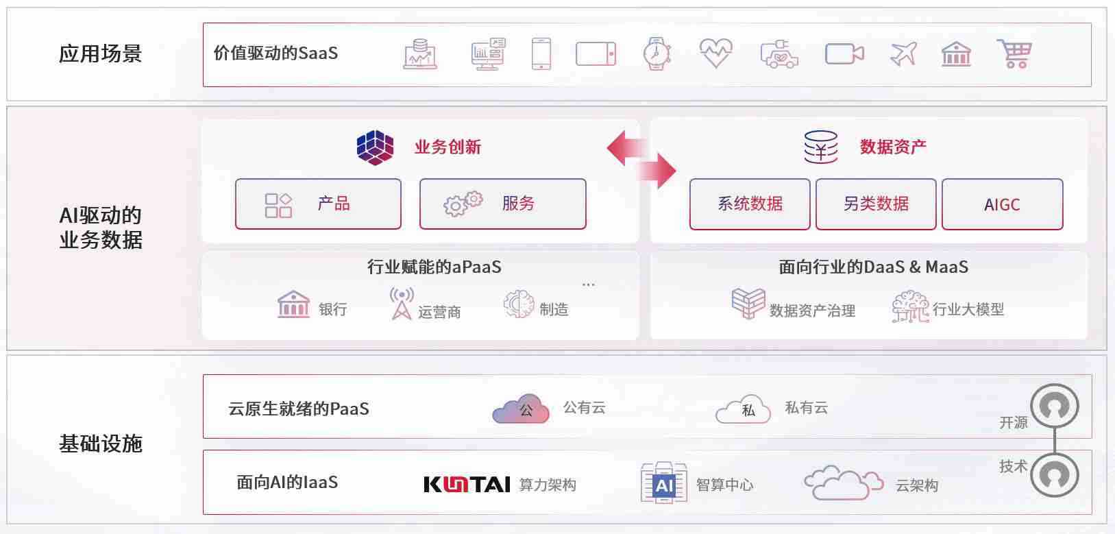 数字时代,,,,围绕企业数字化转型的关键要素,,,z6com尊龙数码开创性的提出数云融合战略和技术体系框架,,着力在云原生、、、、数字原生、、、、AI原生和信创产业上架构产品和服务能力,,,,为处在不同数字化转型阶段的快消零售、、、汽车、、、、金融、、、、医疗、、、政企、、、教育、、、、运营商等行业客户提供泛在的敏捷IT能力和融合的数据驱动能力,,,构建跨界融合创新的数字业务场景和新业务模式,,,助力企业级客户建立面向未来的核心能力和竞争优势,,全面推动社会的数字化、、、、智能化转型升级。。